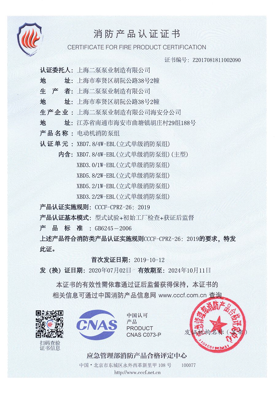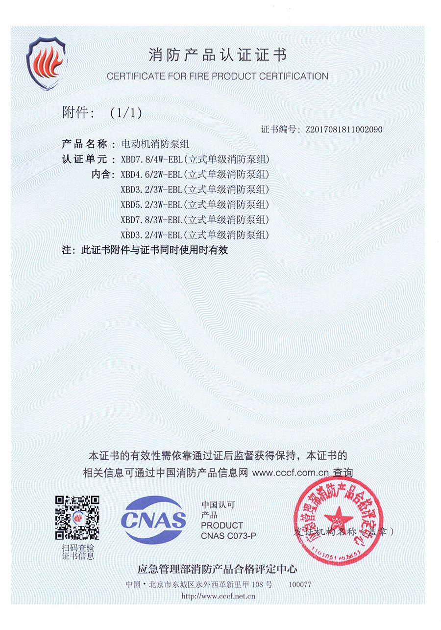 穩壓立式單級EBL-消防產品認證證書(shū)