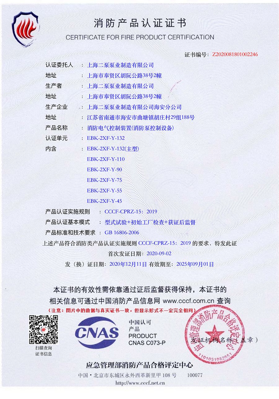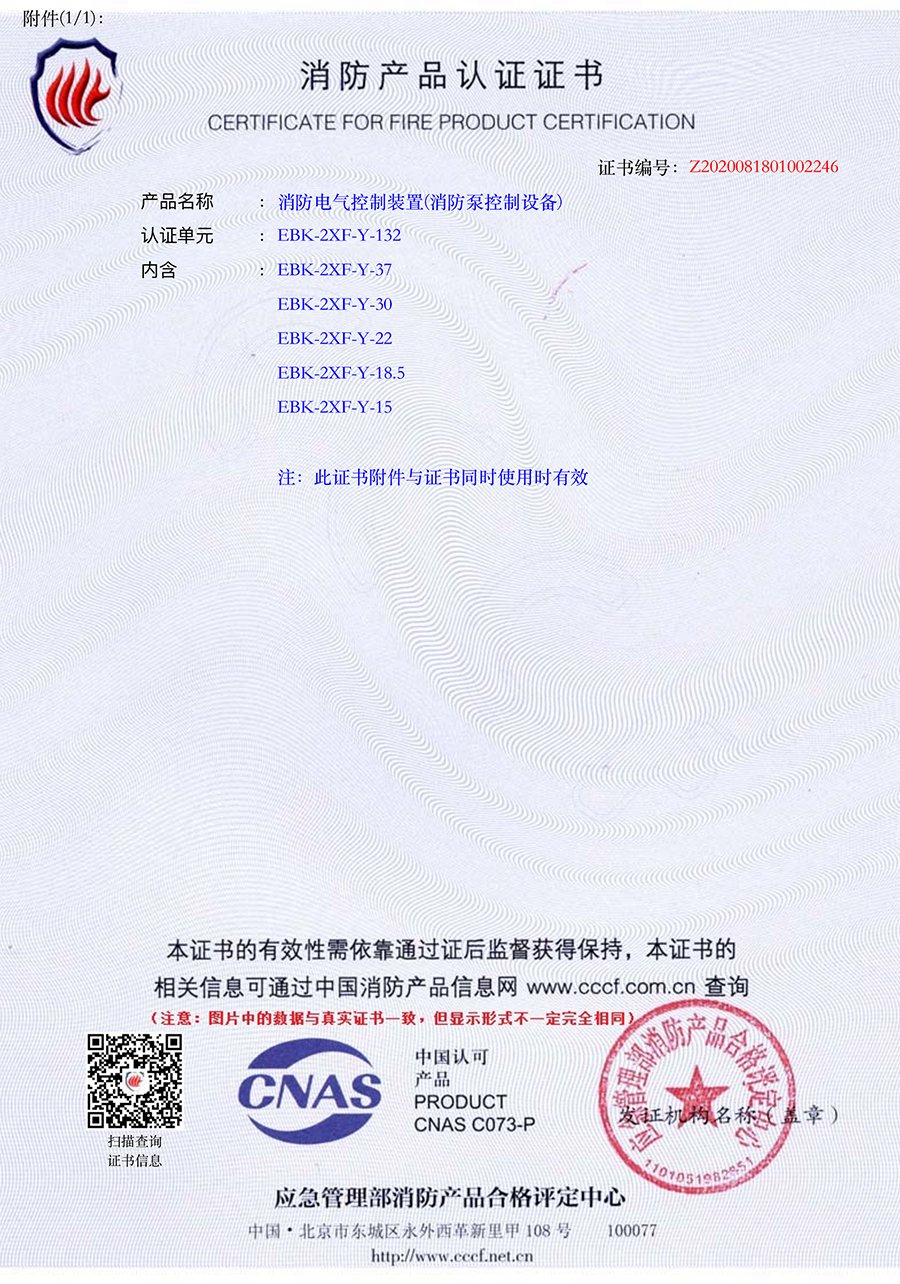 消防(fáng)星三角控製櫃CCCF分型證(zhèng)書