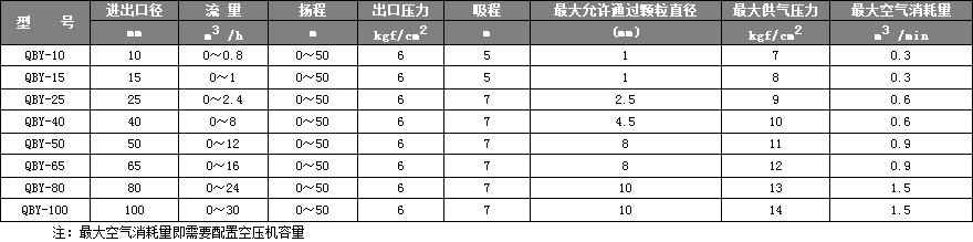 注:空氣消耗量即需要配置空壓機(jī)容量