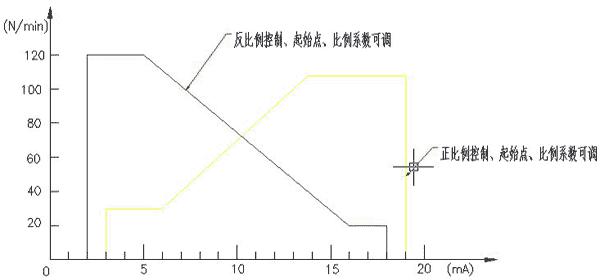 衝程調節(jiē):10-100%按鍵操作、接受脈衝信號、麵板顯示、內(nèi)置乘法、除(chú)法器,自動調節。